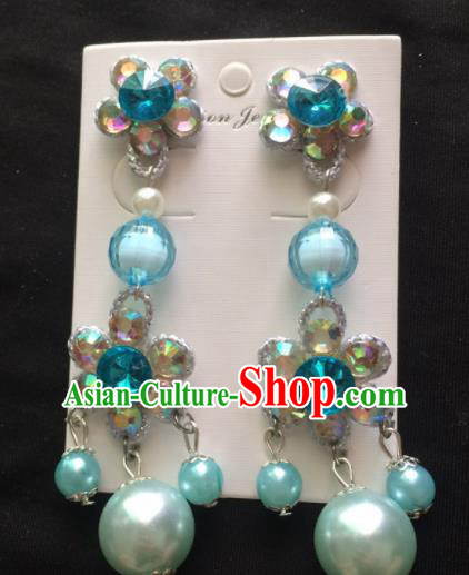 China Yunnan Ethnic Stage Performance Garments Peacock Dance Blue Dress Dai Nationality Folk Dance Clothing