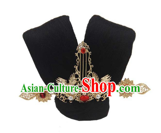 China Ancient Goddess Wigs Traditional Drama Eternal Love Bai Qian Hanfu Chignon Hairpieces Cosplay Fairy Queen Black Wig Sheath