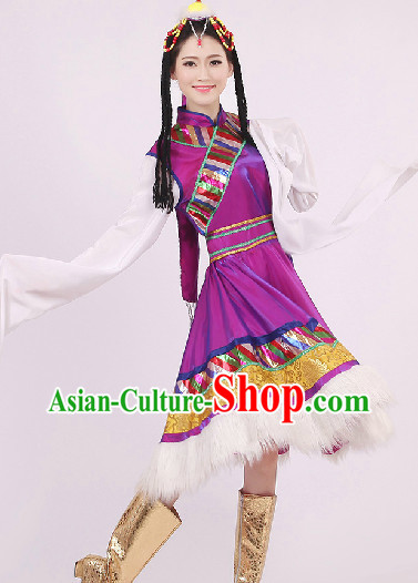 Chinese Tibetan Dance Costumes Attire and Headwear Complete Set for Women