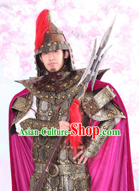 Chinese Ancient General Mantle Costumes and Hat  Complete Set