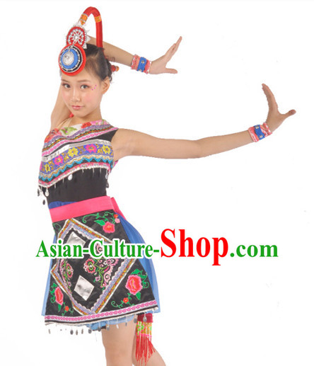 Chinese Nationality Folk Dance Ethnic Wear China Clothing Costume Ethnic Dresses Cultural Dances Costumes Complete Set for Women Girls