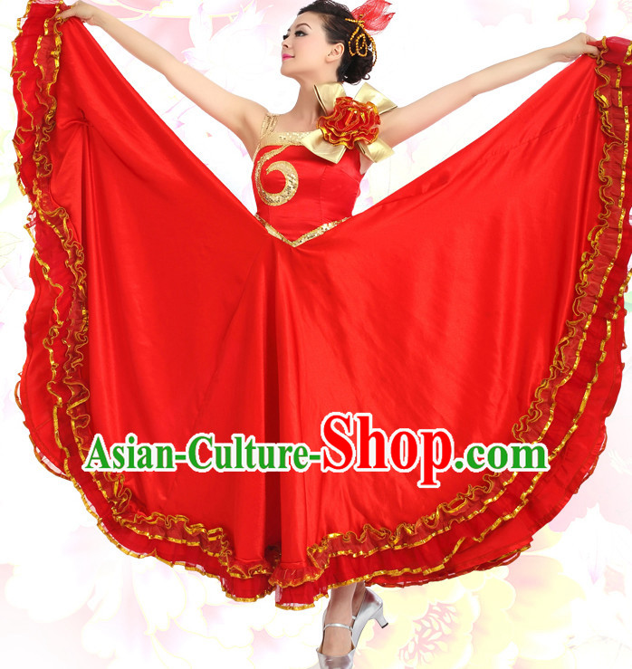 Chinese Traditional Uigurian Nationality Ethnic Costumes Xinjiang Uyghur Minority Folk Dance Red Dress for Women