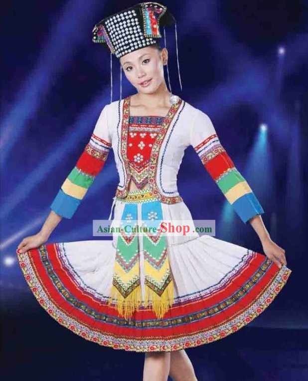Chinese Yilao Ethnic Minority Costumes and Hat Complete Set