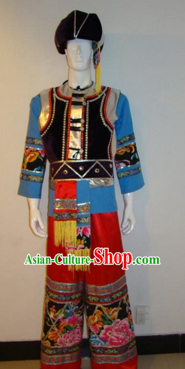 Chinese Traditional Folk Dance Group Dance Costumes Yi Nationality Stage Performance Dress for Women