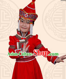Chinese Traditional Mongolian Ethnic Red Brocade Dress Mongol Nationality Folk Dance Costumes for Women